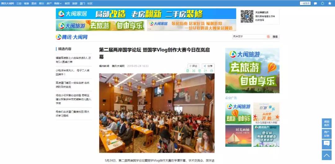 2019-05-26 08:29:15 來源:平潭網綜合平潭網5月26日訊 24日,第二屆兩岸國學論壇暨國學Vlog創作大賽在平潭臺灣創業園兩岸國學中心舉辦,吸引了新華社、中央電視臺、央廣網、央視網、福建日報、東南網、騰訊大閩網、東南衛視,海峽衛視、香港商報、香港經濟導報、新浪、福州新聞網等多家媒體紛紛報道轉載。
