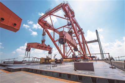 像這樣的例子還有很多。在平潭海峽公鐵兩用大橋的建設(shè)過(guò)程中,出現(xiàn)了許多“首次”——首次應(yīng)用斜拉橋兩節(jié)間全焊接鋼桁梁結(jié)構(gòu)和80米、88米跨整孔全焊接鋼桁組合梁結(jié)構(gòu);首次在復(fù)雜海域系統(tǒng)性開(kāi)展風(fēng)、浪、流等監(jiān)測(cè)預(yù)報(bào);開(kāi)展海峽環(huán)境橋梁深水基礎(chǔ)建造技術(shù)、常遇大風(fēng)環(huán)境下高塔施工技術(shù)、鋼桁梁整體全焊建造技術(shù)、海峽橋梁安全運(yùn)營(yíng)保障技術(shù)等方面的研究,填補(bǔ)了國(guó)內(nèi)空白;自主研發(fā)國(guó)內(nèi)主鉤最高的3600噸浮吊、KTY5000型液壓動(dòng)力頭鉆機(jī)、全封閉抗風(fēng)液壓爬模、海上造橋機(jī)等大型裝備。