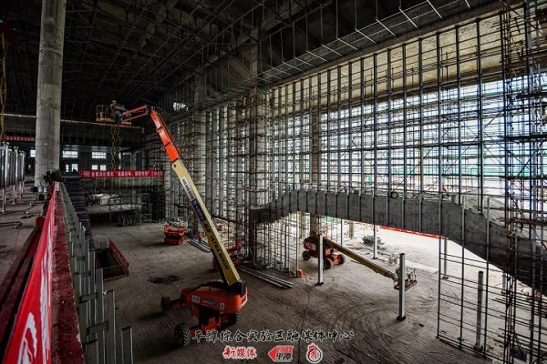 直臂車的進駐,也加快了現(xiàn)場的吊頂安置進度。直臂車進場施工僅10天左右,吊頂轉換層已經(jīng)施工完畢。除了吊頂?shù)陌惭b,項目的幕墻安裝都在全力推進。“我們幕墻安裝主要是龍骨的施工,目前北立面、東立面和南立面的龍骨已經(jīng)全部施工完畢,我們力爭在8月底,能夠把東立面、北立面和南立面施工完成。”王共平說。