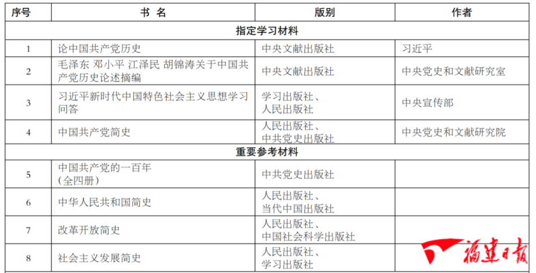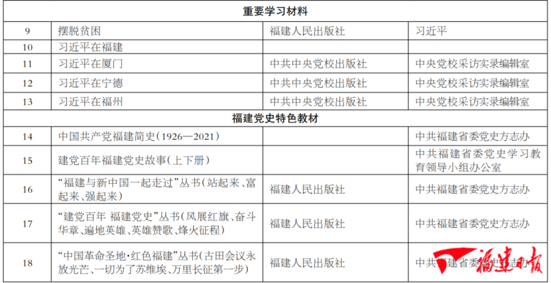 中共福建省委黨史學(xué)習(xí)教育領(lǐng)導(dǎo)小組辦公室向黨員干部推薦學(xué)習(xí)書目