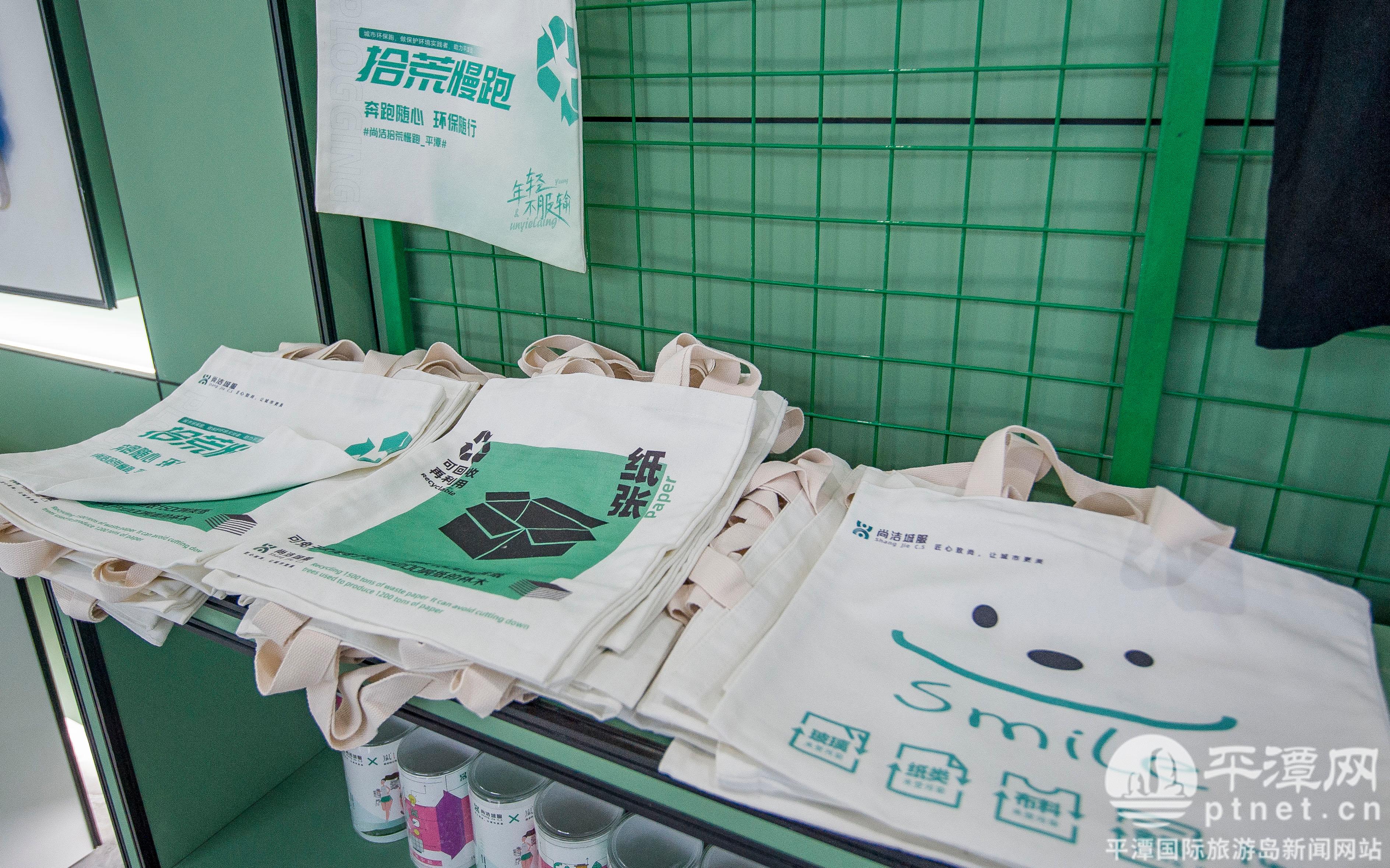 走進該企業的再生資源回收利用展示區,幾款風格簡約的T恤和帆布包吸引了記者的注意。其中一只帆布包上,印著象征平潭的“嵐”字,通過藝術的表達,讓人看到了字里行間的山川湖海與自然寫意?!半[山中,與自然相依,拾自然之物,用智慧造物?!狈及疑辖堑膬尚凶智∪缙浞值亟忉屃似淦放频睦砟?。