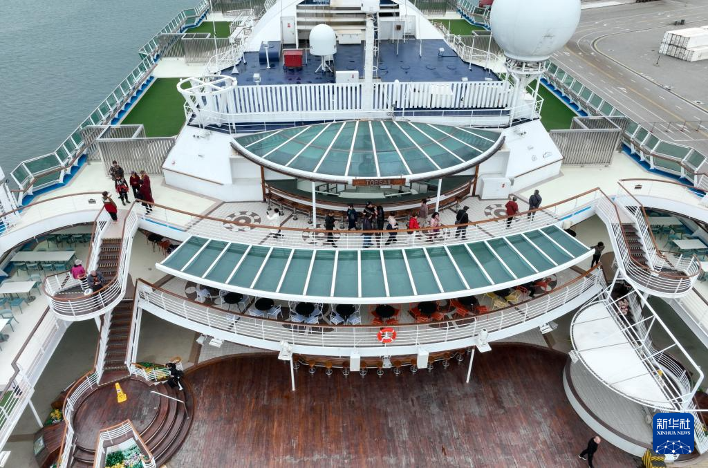 3月6日,旅客在“夢想”號國際郵輪上參觀(無人機照片)。