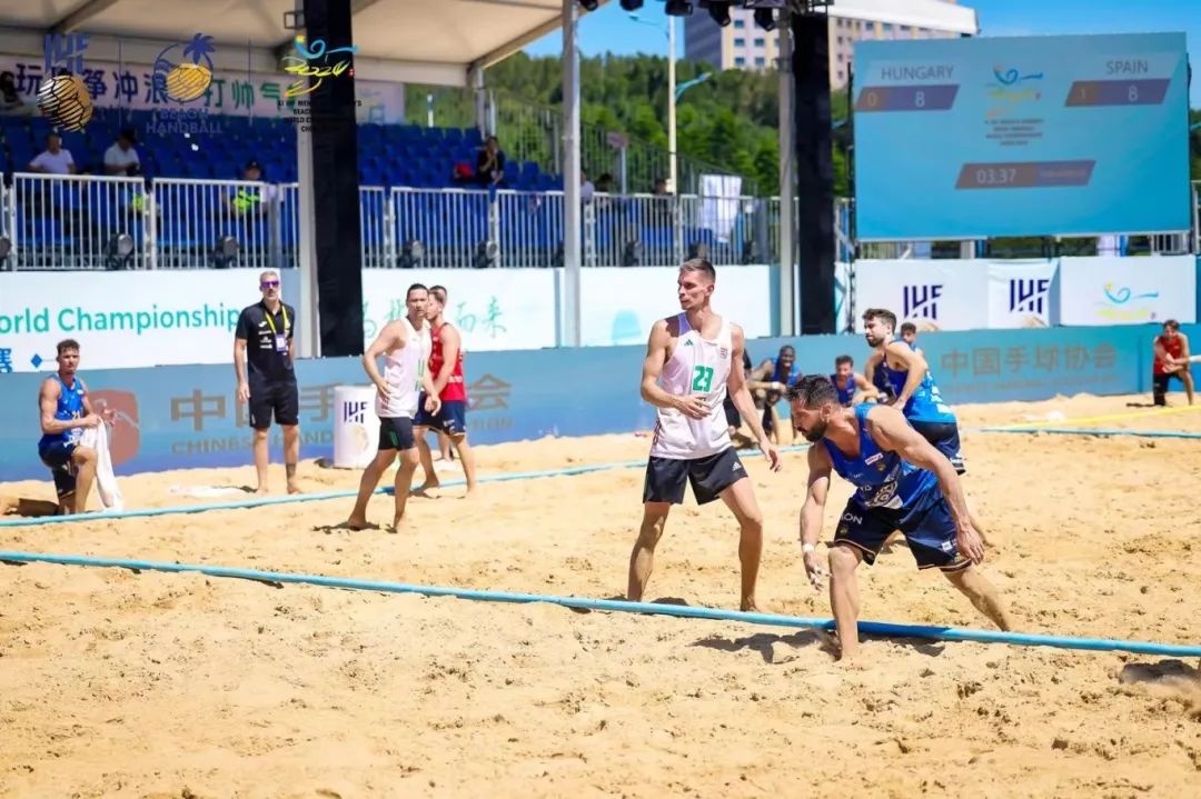 上午九點半,主場地進行了男子組匈牙利隊和西班牙隊的比賽。兩隊在沙灘上展開了激烈角逐,選手們靈活的身姿和精準的傳球,贏得現場觀眾陣陣掌聲。經過一番鏖戰,西班牙隊憑借出色的團隊配合和穩定的發揮,以2:0戰勝匈牙利隊。
