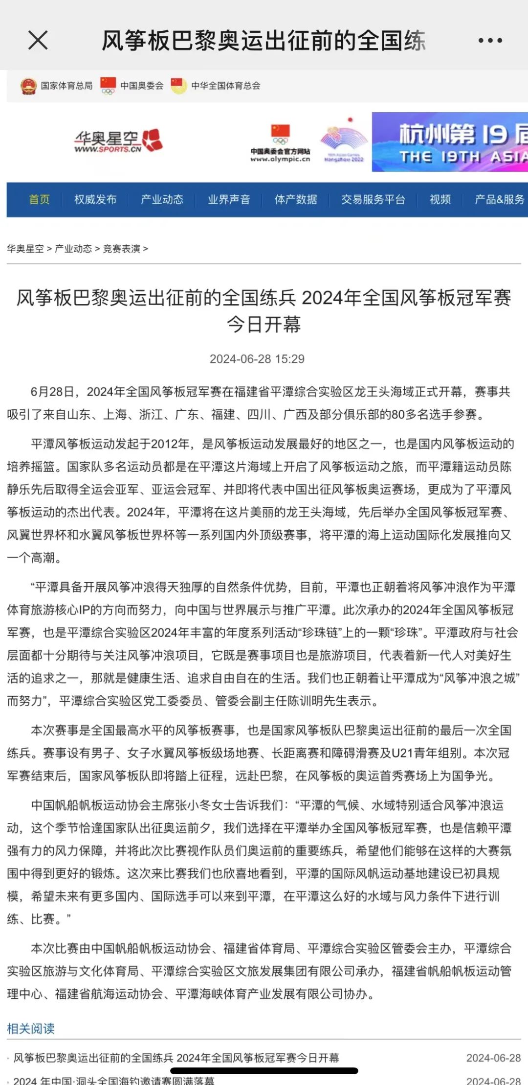 本次賽事是巴黎奧運(yùn)會(huì)前中國水翼風(fēng)箏板隊(duì)的最后一次熱身賽。賽事結(jié)束后,國家風(fēng)箏板隊(duì)即將踏上征程,遠(yuǎn)赴巴黎。中國隊(duì)已經(jīng)獲得巴黎奧運(yùn)會(huì)兩個(gè)滿額的水翼風(fēng)箏板項(xiàng)目名額,女子選手陳靜樂和男子選手黃齊濱將代表中國參賽。