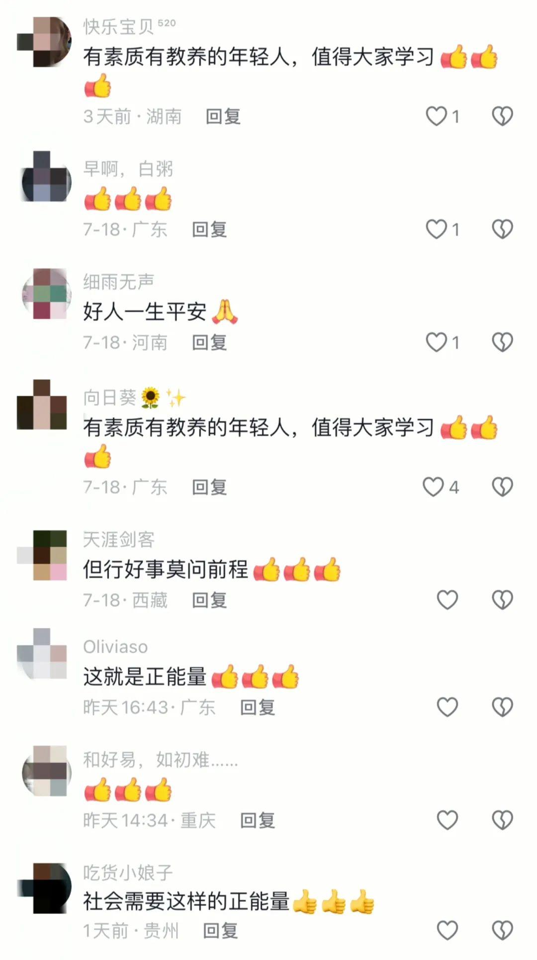 “值得大家學習”“社會需要這樣的正能量”……尋人視頻一經發布,便吸引了廣大網友的關注,大家紛紛為兩個年輕人的善舉點贊。而后,央視新聞、新華社等10余家媒體轉發了閆先生的尋人視頻,以弘揚社會正能量。據了解,目前閆先生已經初步確定兩個年輕人的網絡社交平臺賬號,并通過網絡平臺留言,希望能夠表達感謝,截至發稿時尚未收到回復。