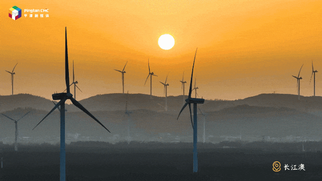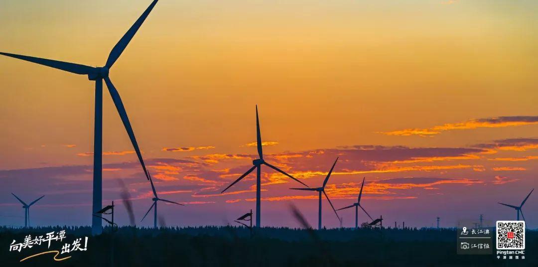風車在夕陽的余暉中悠悠轉動