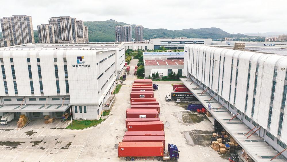 平潭跨境電商園區內擺放著裝卸貨物的集裝箱。