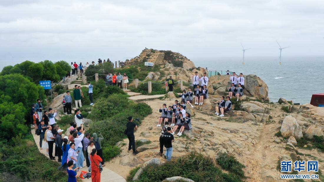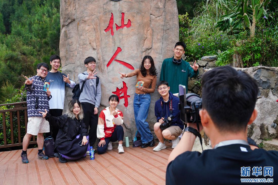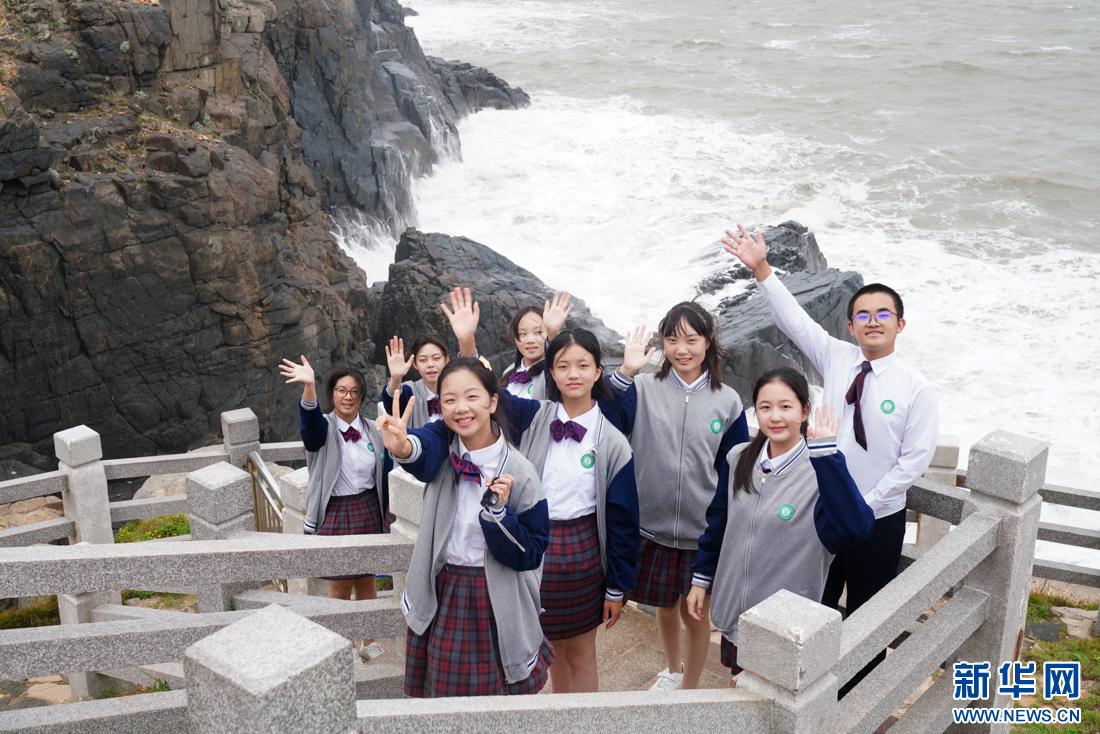 廈門六中博雅合唱團(tuán)(阿卡貝拉團(tuán))學(xué)生在平潭仙人井景區(qū)打卡,感受海島風(fēng)情。新華網(wǎng) 肖和勇 攝