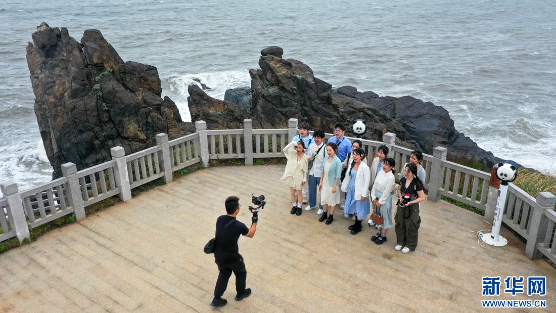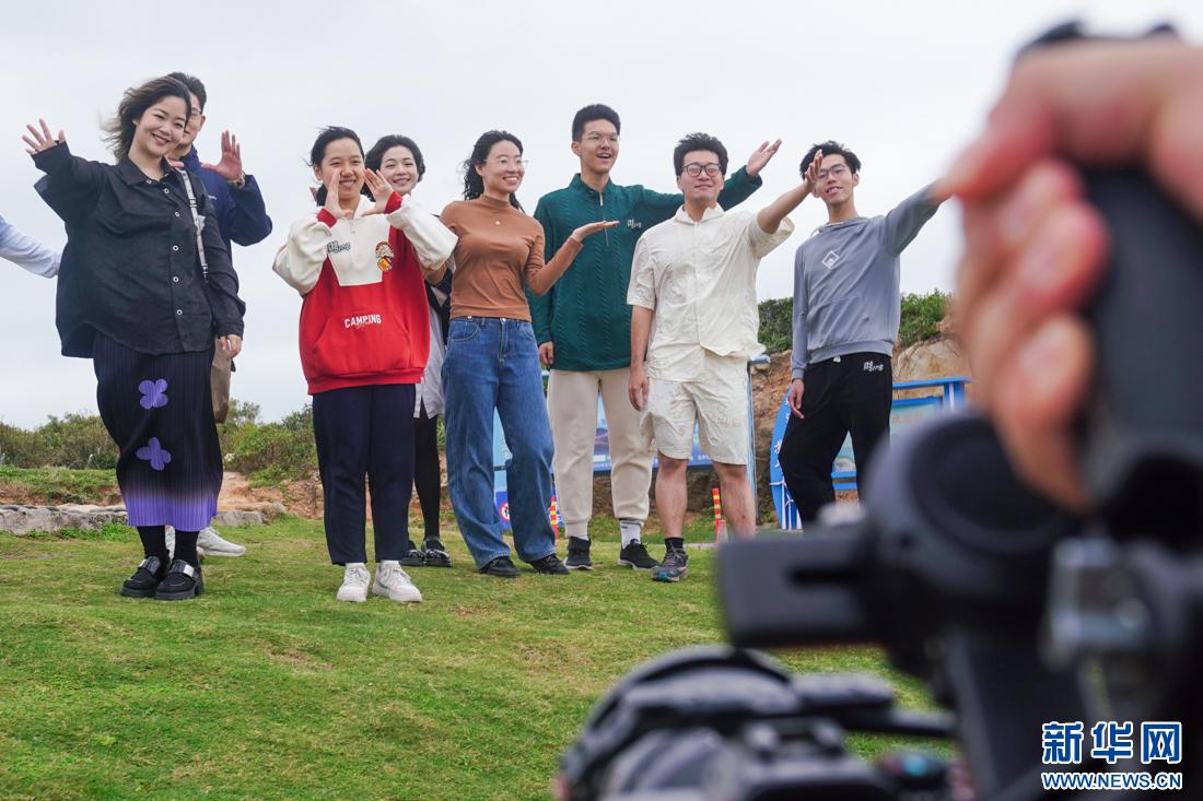 高校樂團(tuán)在平潭仙人井景區(qū)打卡,拍攝主題Vlog,代言海島文旅。新華網(wǎng)肖和勇攝
