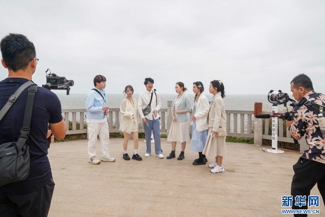 高校樂團(tuán)在平潭仙人井景區(qū)創(chuàng)作主題阿卡貝拉唱段,錄制主題Vlog。新華網(wǎng) 肖和勇 攝