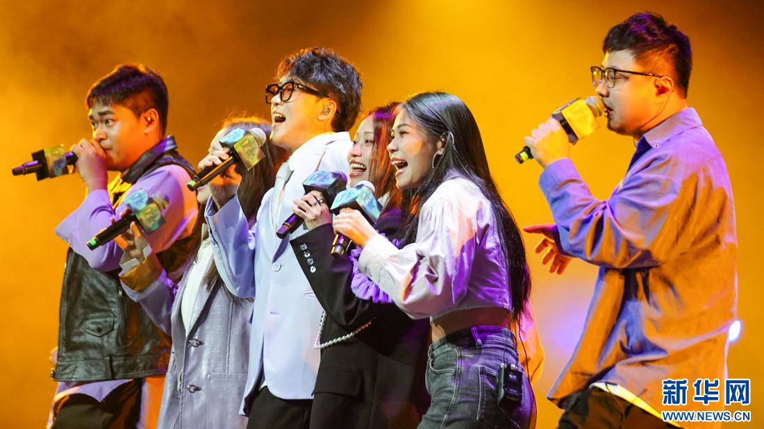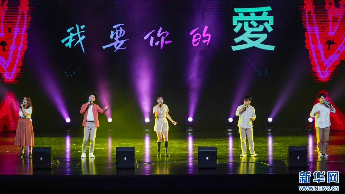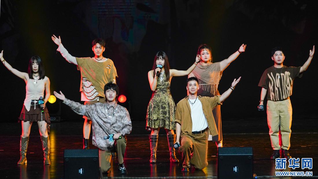 來自杭州的CHO碳?xì)溲跞寺晿穲F(tuán)登臺演唱歌曲。新華網(wǎng) 肖和勇 攝