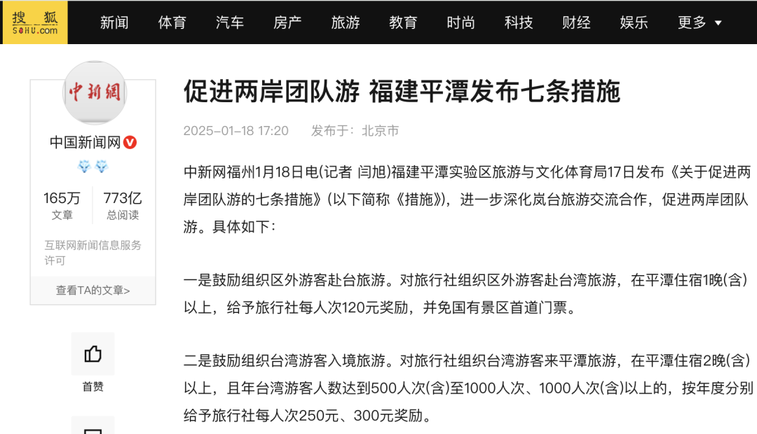《關(guān)于促進(jìn)兩岸團(tuán)隊(duì)游的七條措施》