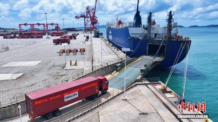 據(jù)統(tǒng)計(jì),“臺(tái)北快輪”總噸位18080噸,一次最大可載運(yùn)230個(gè)標(biāo)準(zhǔn)集裝箱,采用集裝箱連車(chē)架一同運(yùn)輸?shù)姆绞剑d運(yùn)跨境電商貨物、快件、小貿(mào)市場(chǎng)貨物以及一般貿(mào)易貨物,為目前入境平潭港最大噸位貨物滾裝船。