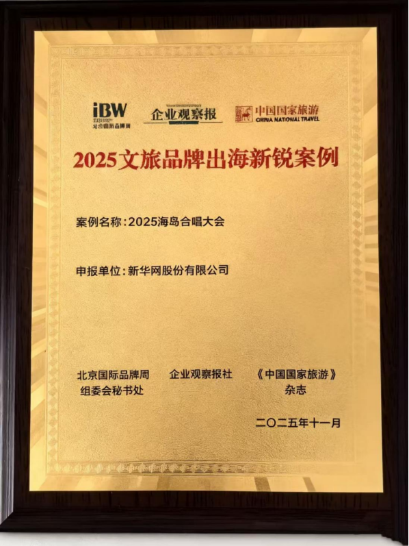 11月30日,北京國際品牌周組委會、企業觀察報社、《中國國家旅游》雜志共同舉辦的2025全國文旅品牌國際傳播交流大會在北京召開。會上,“2025海島合唱大會”入選文旅品牌出海新銳案例。