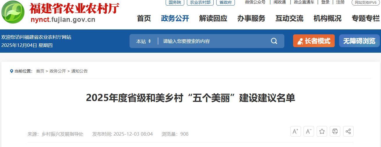 平潭網12月4日訊 近日,福建省農業農村廳發布了2025年度省級和美鄉村“五個美麗”建設建議名單,根據名單共有1020戶(含備選20戶)庭院入選美麗鄉村庭院建議名單,117個(含備選17個)微景觀入選美麗鄉村微景觀建議名單,117個(含備選17個)公共空間入選美麗鄉村公共空間建議名單,117個(含備選17個)田園入選美麗田園建議名單,50個(含備選10個)村,其中,平潭入選名單如下: