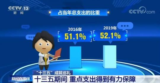 2016-2019年,我國在教育、社會保障和就業、衛生健康、住房保障、節能環保等重點領域上花的錢,從9.6萬億元增加到了12.4萬億元,占當年總支出的比重從51.1%提高到52.1%。保基本、兜底線,“十三五”以來,我國在財政收支平衡壓力較大的情況下,確保了基本民生投入只增不減。