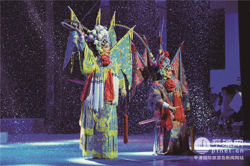 閩劇是平潭主要的戲曲曲種,自清康乾盛世期由邑人浙江水陸提督詹功顯從福清引入平潭,《漢宮夢》《天鵝宴青天》是平潭閩劇團改編的著名曲目。