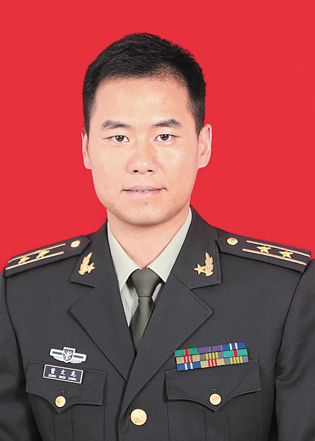 曾文龍,西部戰區某部工程師。男,漢族,1980年9月出生,1999年9月入伍,1999年5月入黨。該同志堅持聚焦服務軍事斗爭準備深研制勝機理,緊盯新質作戰領域前沿攻堅克難,先后14次赴高原一線執行任務,累計時長67個月,行程10余萬公里,翻越海拔4000米以上雪山上百次,取得大量實用管用成果,為聯合作戰指揮提供了有力支撐。獲軍隊科技進步二等獎1項,全軍特等成果1項、一等成果9項、二等成果6項,榮立二等功1次、三等功3次。