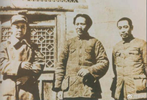 洛川會(huì)議上組成了新的中共中央革命軍事委員會(huì),毛澤東為書記(亦稱主席)。這是毛澤東、周恩來和任弼時(shí)的合影。