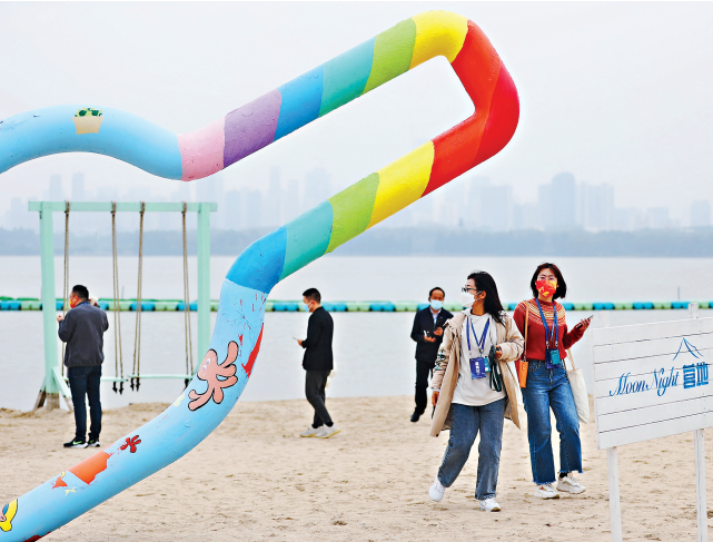 百名總編輯打卡東湖,在東湖沙灘浴場(chǎng)感受“海島自由”。 記者何曉剛 攝