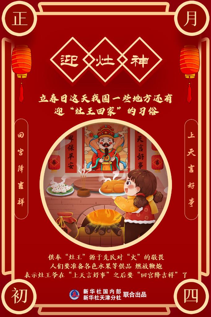 新華社天津2月3日電(記者周潤健)2月4日,正月初四,時值立春;巧的是,這一天恰值我國一些地區按照傳統習俗,迎“灶王回家”。