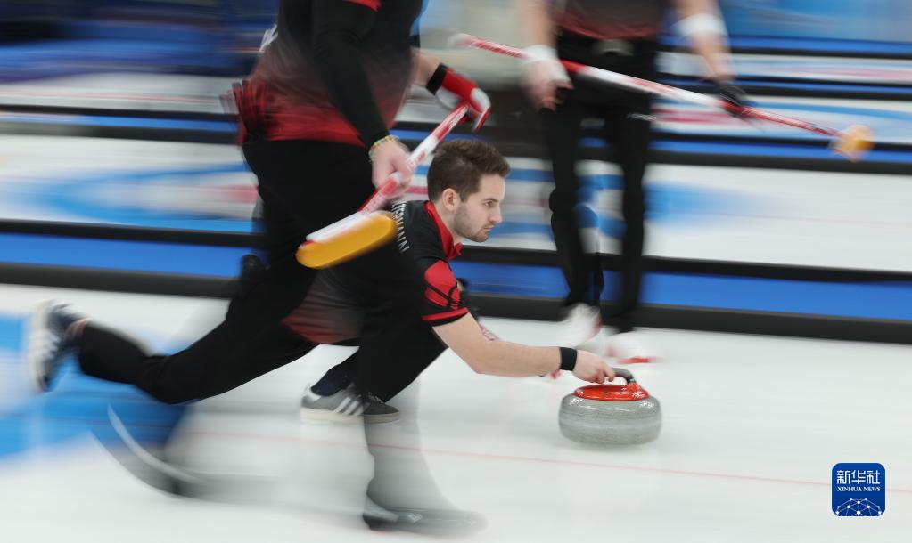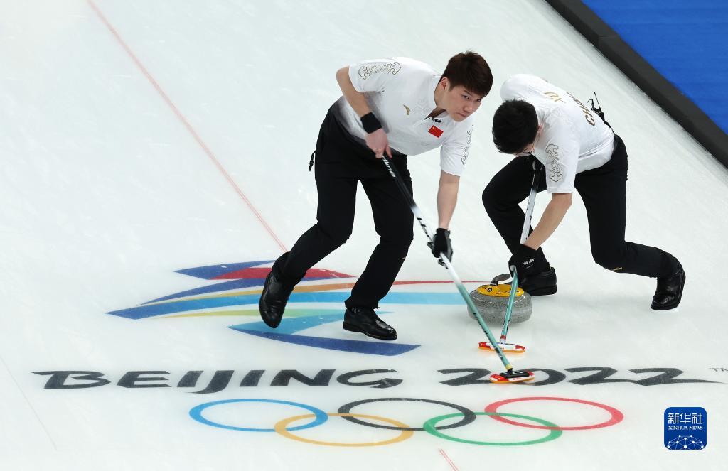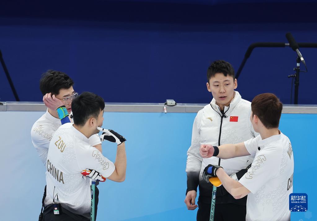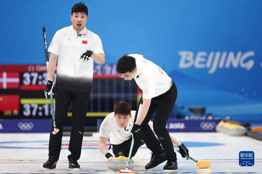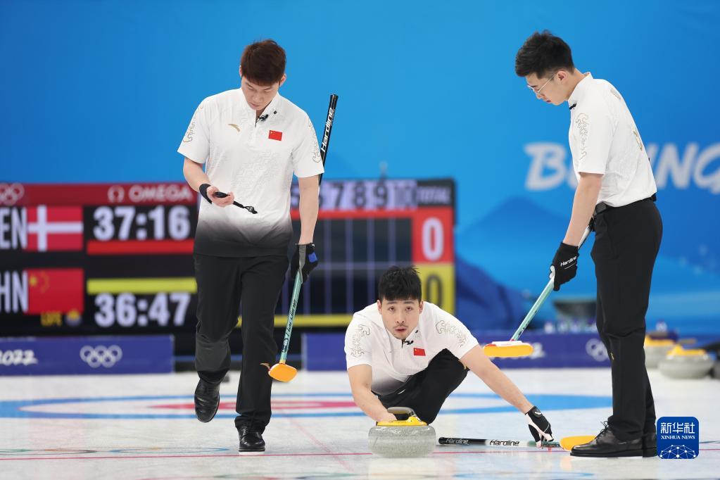 當日,在北京國家游泳中心“冰立方”舉行的北京2022年冬奧會冰壺男子循環賽中,中國隊以5比4戰勝丹麥隊。