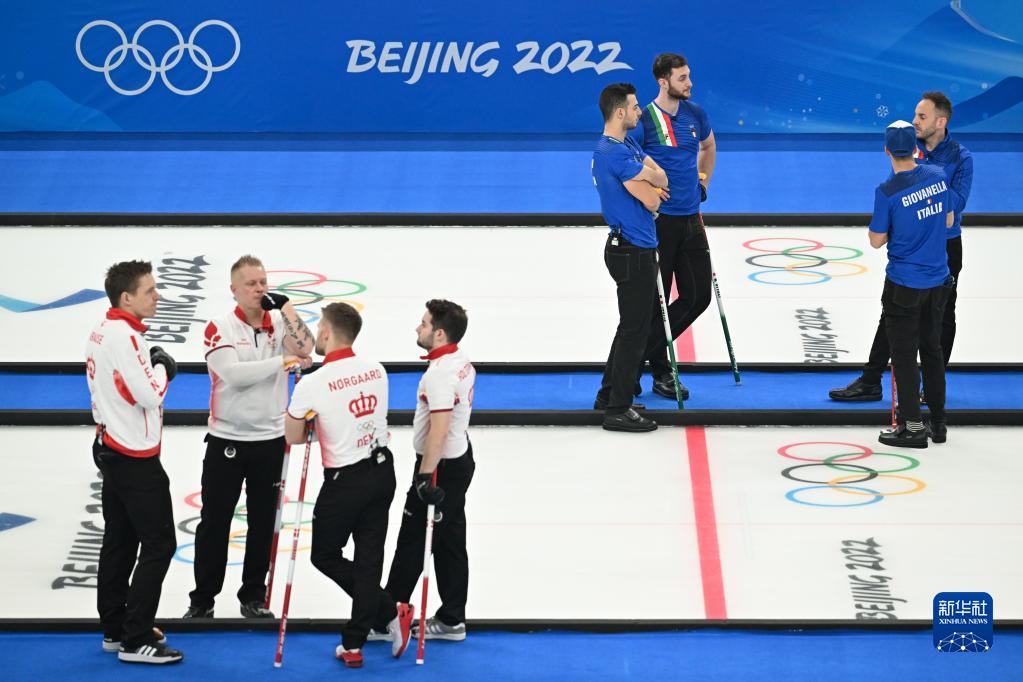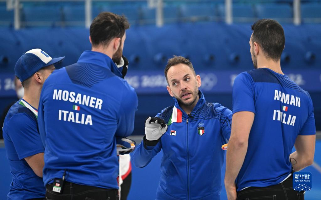 當日,在北京國家游泳中心“冰立方”舉行的北京2022年冬奧會男子冰壺循環賽中,意大利隊以10比3戰勝丹麥隊。