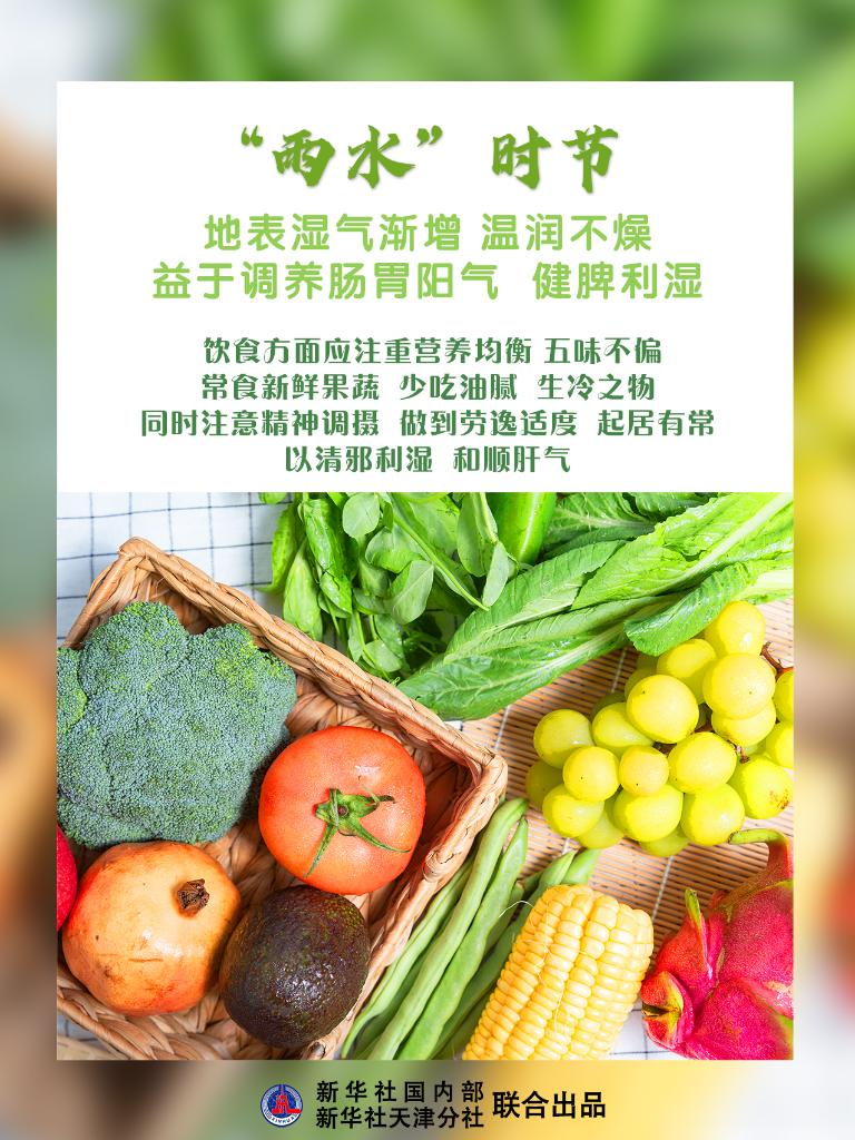 “雨水”時節(jié),地表濕氣漸增,溫潤不燥,益于調(diào)養(yǎng)腸胃陽氣,健脾利濕。飲食方面應注重營養(yǎng)均衡,五味不偏,常食新鮮果蔬,少吃油膩、生冷之物,同時注意精神調(diào)攝,做到勞逸適度,起居有常,以清邪利濕,和順肝氣。