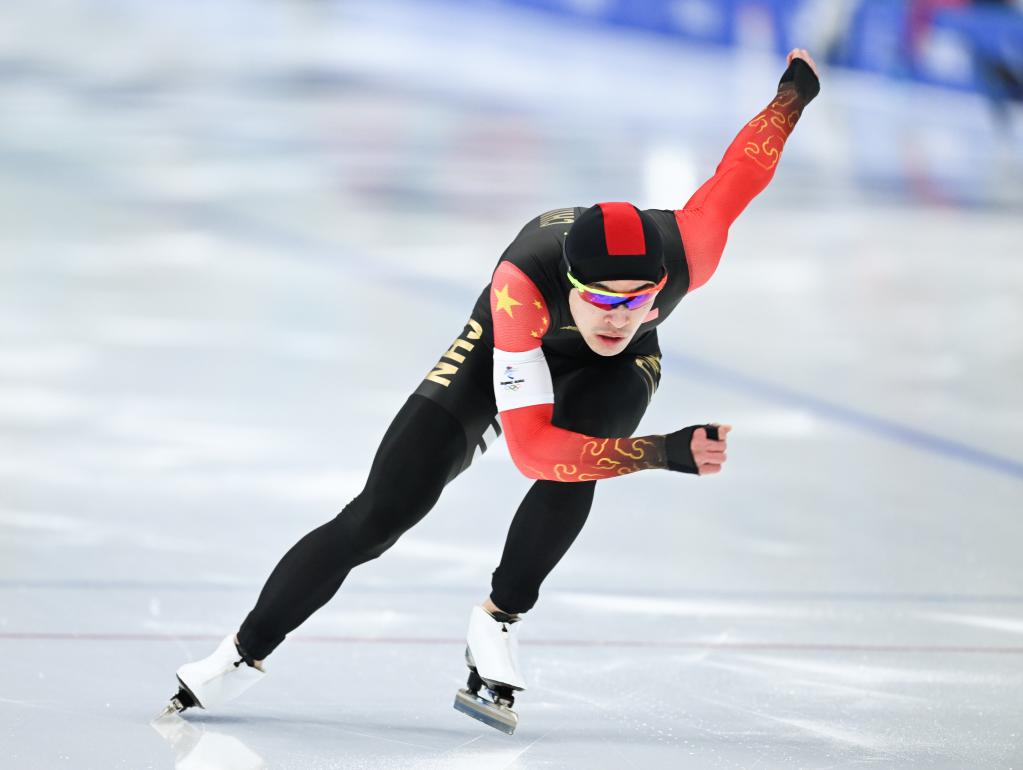 2月18日,中國選手寧忠巖在北京冬奧會速度滑冰男子1000米比賽中。新華社記者武巍攝
