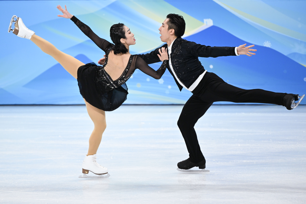 2月18日,中國選手隋文靜(前)/韓聰在北京冬奧會花樣滑冰雙人滑短節目比賽中。新華社記者鞠煥宗攝