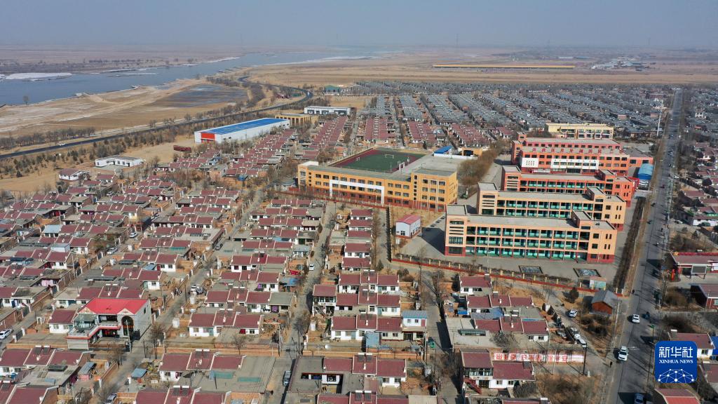 寧夏銀川市興慶區(qū)月牙湖鄉(xiāng)濱河家園移民村(無(wú)人機(jī)照片,2021年2月11日攝)。新華社記者 王鵬 攝