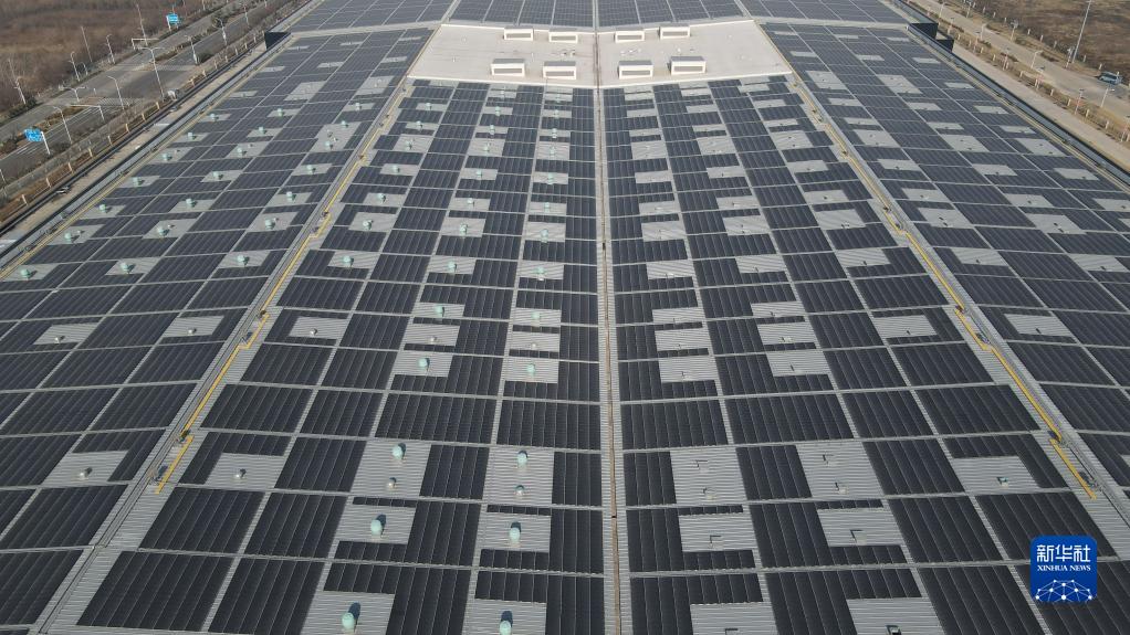 這是位于蚌埠中光電科技有限公司內(nèi)的薄膜光伏建筑一體化應(yīng)用示范項(xiàng)目(2021年12月21日攝,無(wú)人機(jī)照片)。新華社記者 張端 攝