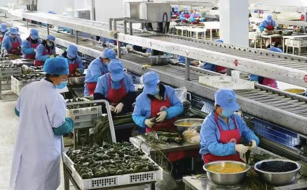 “粽子產業園投產不到幾天,就接到北京、上海、天津、內蒙古等地客戶的300萬只粽子訂單,其中30%來自網絡平臺。”張新文說。