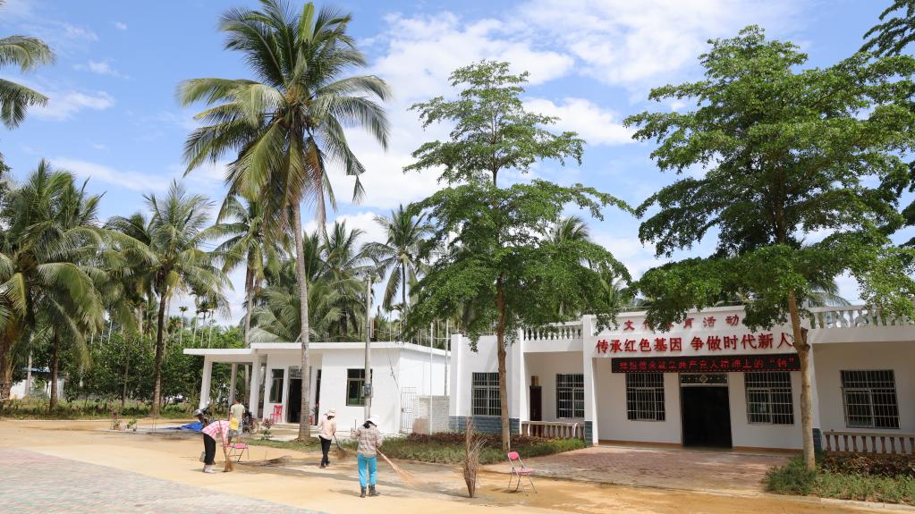 萬(wàn)寧市長(zhǎng)豐鎮(zhèn)七甲村村民在清掃村莊衛(wèi)生。新華社記者郭良川攝