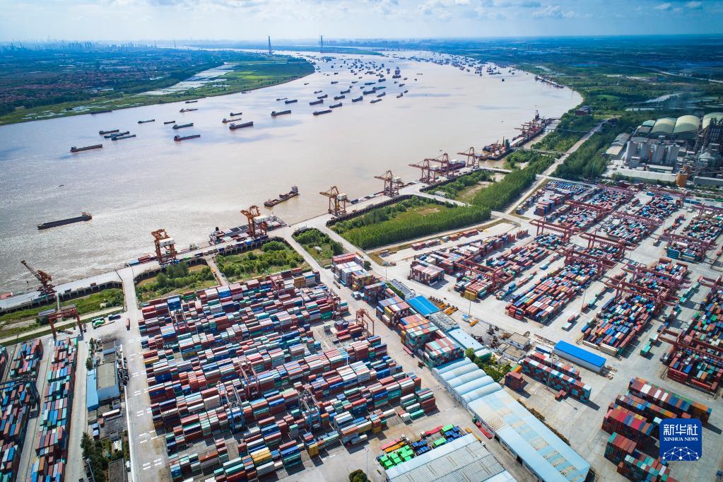船舶在武漢陽邏港區水域行駛(2018年8月13日攝,無人機照片)。新華社記者 肖藝九 攝