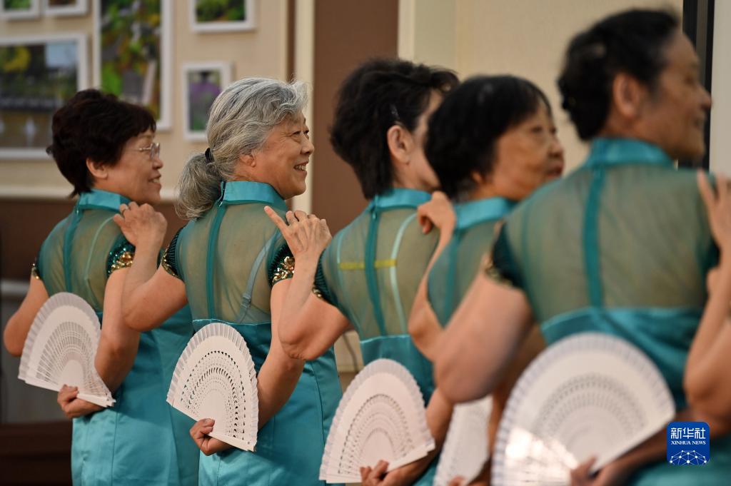 在天津市靜海區一大型養老社區內,老人們在上舞蹈課(2021年8月30日攝)。新華社記者 李然 攝
