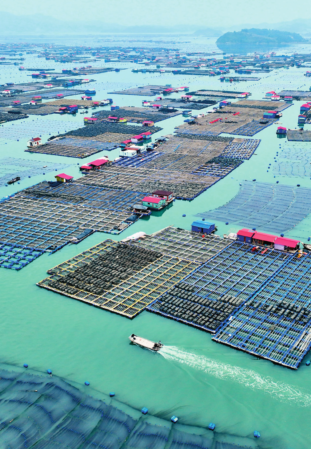 晨光灑在海面,萬頃碧波間,一列列網箱如同阡陌縱橫的海上農田,色澤金黃的大黃魚悠然歡游,穿梭其間的漁民們徜徉在“金黃色的美夢”中。