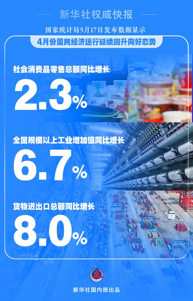2024-05-17 16:41:13 來源:新華網原標題:4月份國民經濟運行延續回升向好態勢