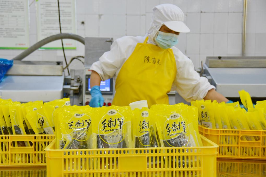 在福建省建甌市一家筍竹加工企業,工人在加工手剝筍產品。新華社記者 張華迎 攝