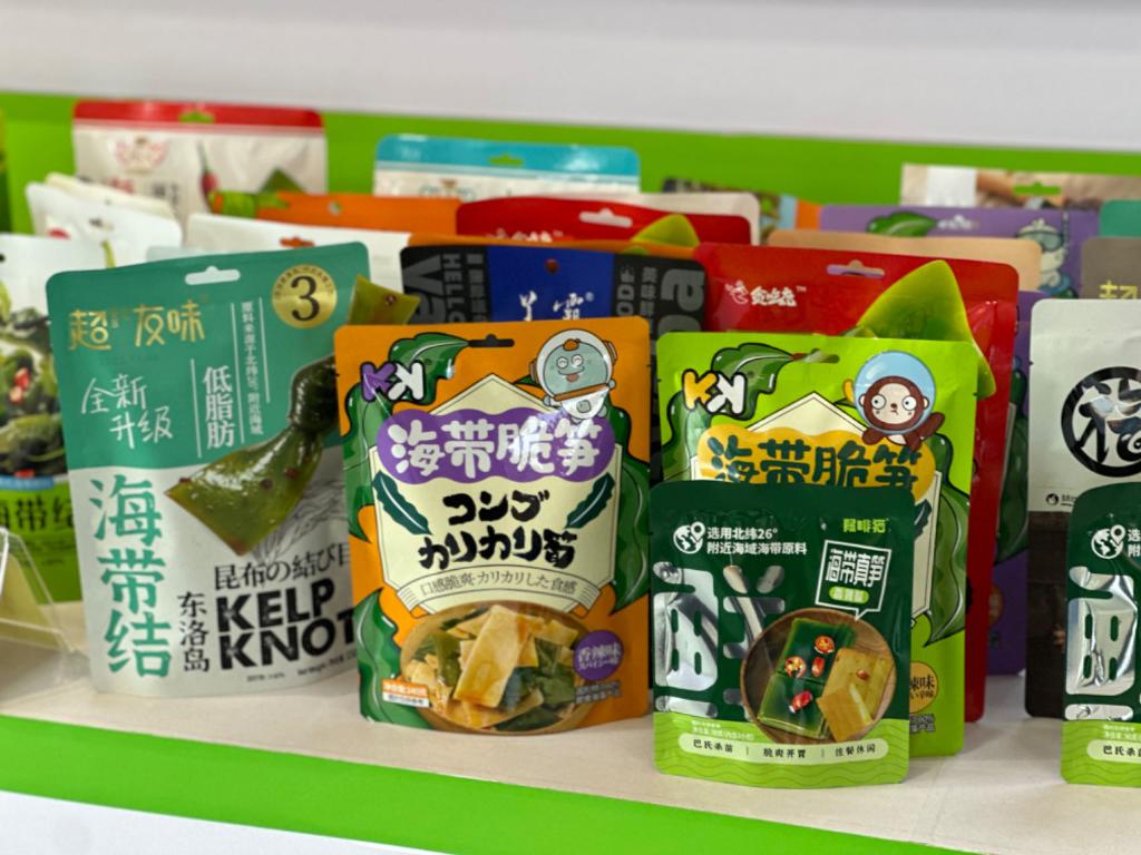 圖為福建省連江縣一家海帶加工企業展廳里擺放的海帶即食產品。 新華社記者 龐夢霞 攝