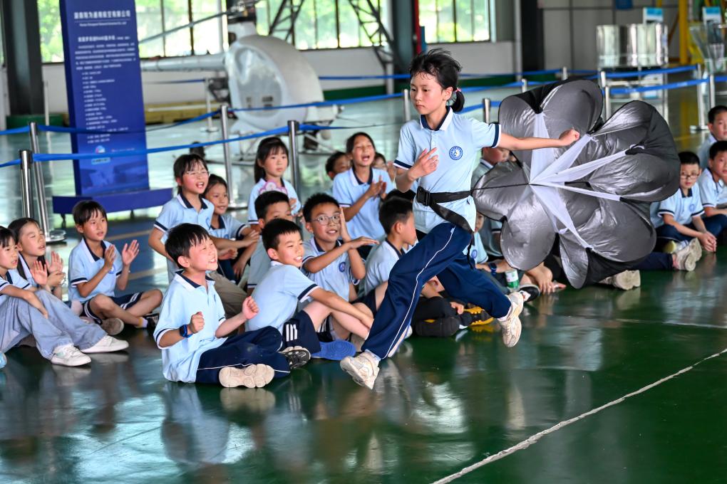 6月13日,在位于湖南株洲蘆淞區的翔為通航基地,小學生在進行研學活動。新華社記者 張鋮 攝