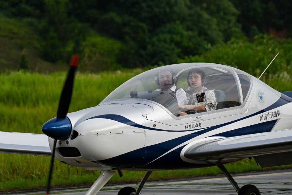 6月13日,在湖南株洲蘆淞機場,客戶在體驗低空飛行。新華社記者 張鋮 攝