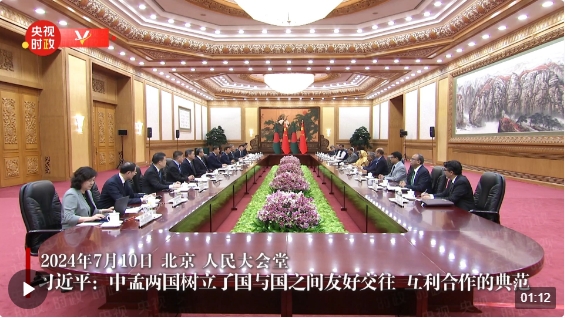 2024-07-11 15:36:07 來源:央視新聞客戶端獨家視頻丨習近平:中孟兩國樹立了國與國之間友好交往 互利合作的典范