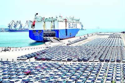 加快推進(jìn)涉外立法工作、協(xié)調(diào)推進(jìn)國內(nèi)治理和國際治理,使得國內(nèi)大循環(huán)和國內(nèi)國際雙循環(huán)不斷暢通。圖為山東港口煙臺港汽車碼頭,整齊停放的商品車等待運輸。新華社發(fā)