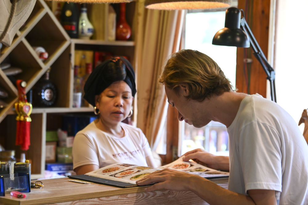 來自德國的游客在大寨村一家民宿點(diǎn)菜(6月26日攝)。