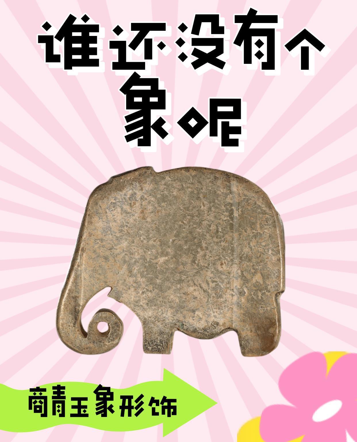 玉質(zhì)灰白色,表面有褐色沁。玉象扁片狀,鼻卷曲,身軀肥壯,肢粗如柱,全身光素?zé)o紋。匠師運(yùn)用極為簡(jiǎn)括的刀法突出象的長(zhǎng)卷鼻與體態(tài)特征,古樸拙重,憨態(tài)可掬。