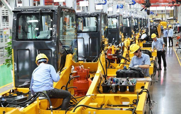這是在廣西柳州市柳工挖掘機智慧工廠拍攝的挖掘機上部機構件組裝線(2024年11月12日攝)。新華社記者 金皓原 攝