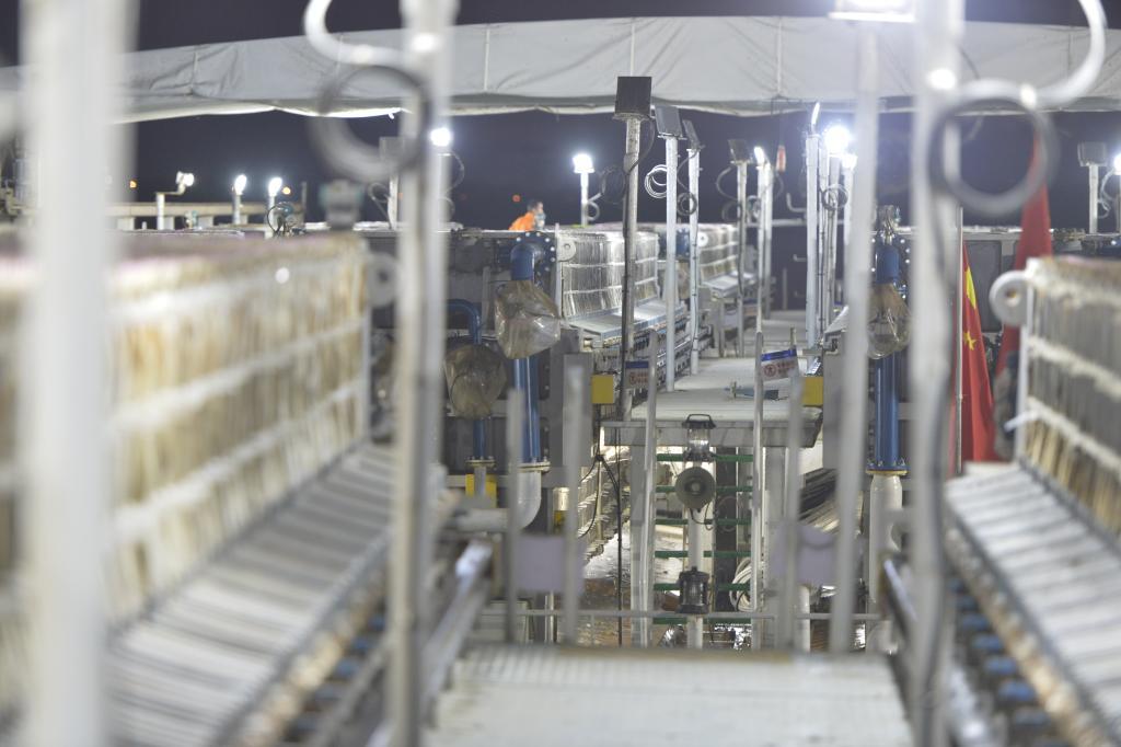 在無錫宜興水域,一座名為“太湖之光”的水上“移動工廠”正24小時運轉。它由多艘作業船串聯而成,管道縱橫、設備密布。