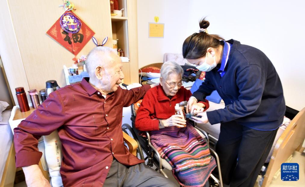12月2日,北京市殘疾人服務示范中心的工作人員在為參加短期托養的老年人服務。