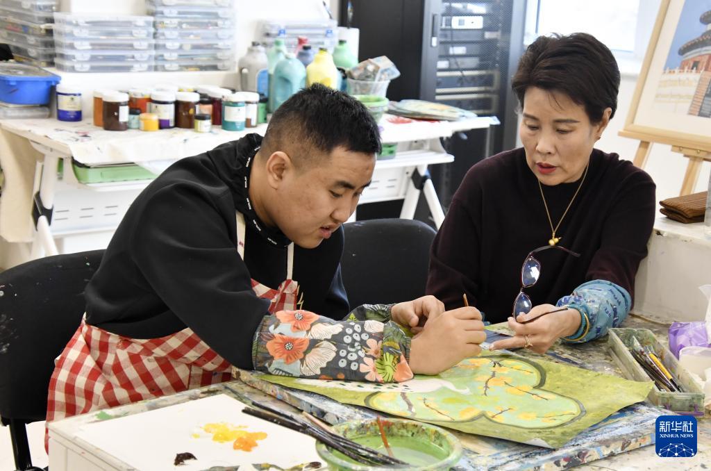 12月2日,北京市殘疾人服務示范中心藝術康復項目的學員在學習繪畫。